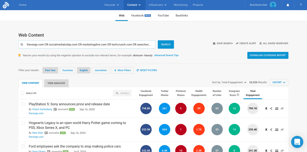 BuzzSumo는 실시간 콘텐츠 발굴과 분석에 탁월한 툴로,