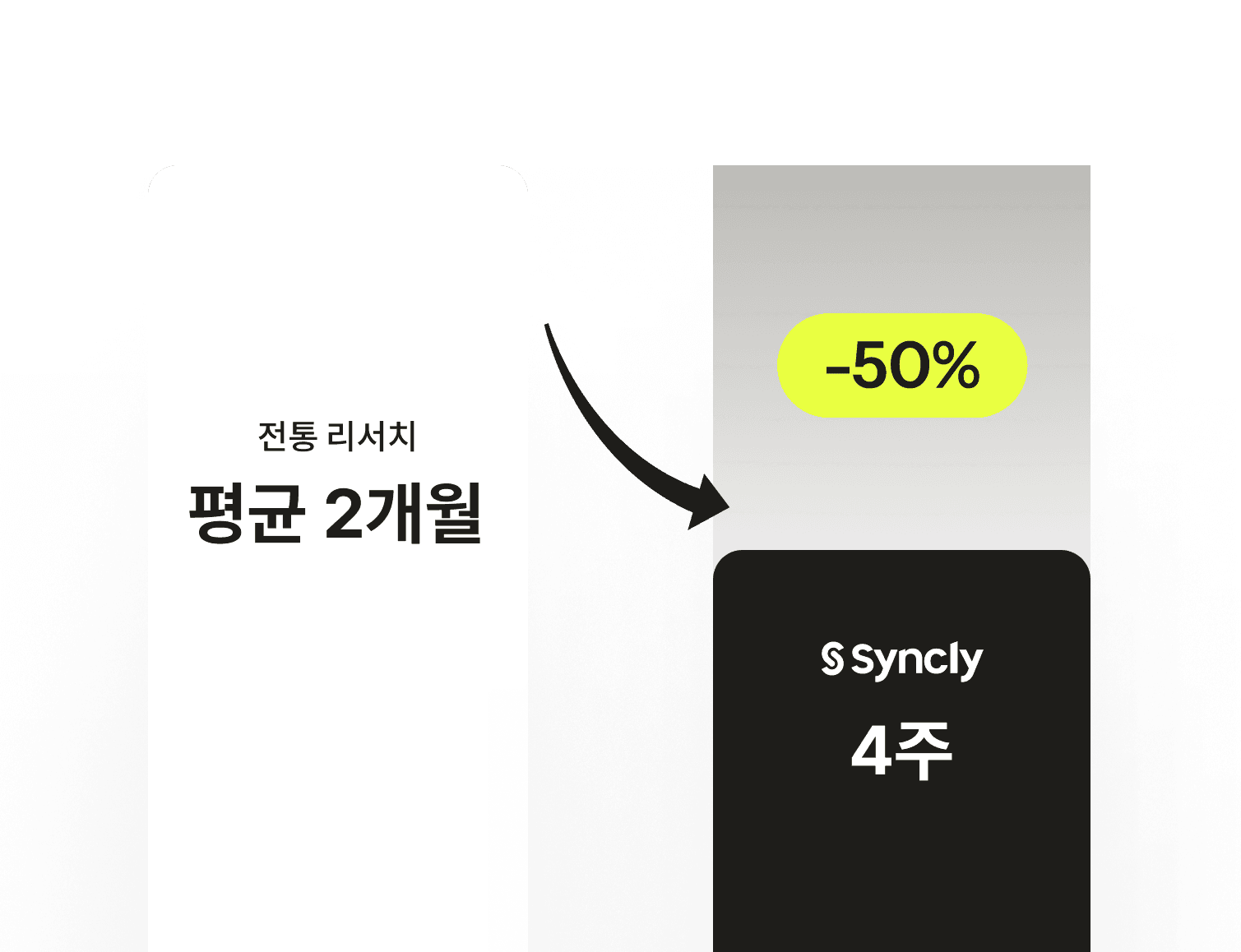 데이터 수집부터 분석, 리포트까지 평균 4주 이내 완료됩니다. 캠페인 설계나 제품 런칭 전 빠른 의사결정을 하실 수 있도록 지원합니다.