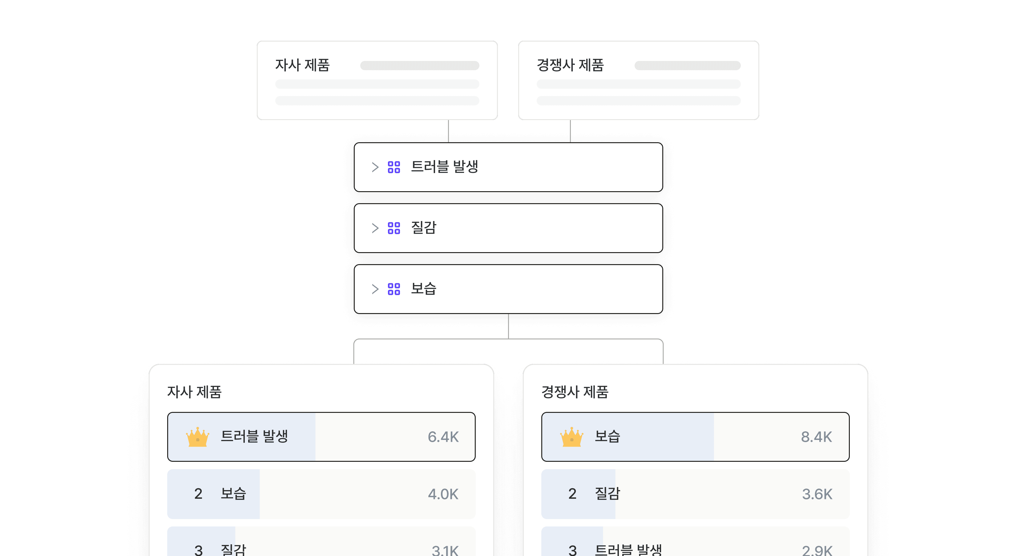 단순 수치를 넘어, 원문까지 확인 가능한 대시보드로 우리 브랜드 제품의 현황을 정확히 파악하고, 개선점을 도출할 수 있습니다.