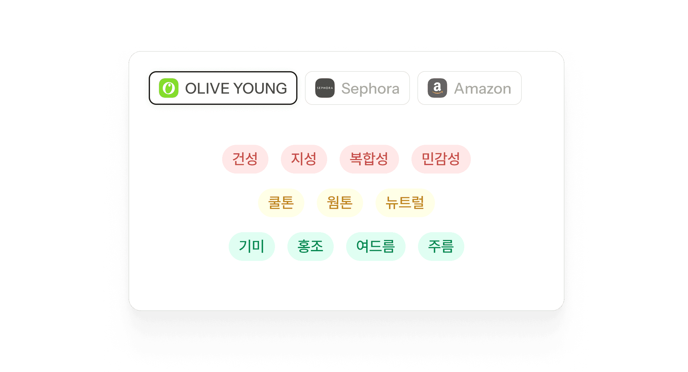 올리브영, 아마존, 세포라 등 주요 채널의 제품 링크만 입력하면 리뷰가 수집되고, AI가 광고성 리뷰를 걸러내 진짜 반응만 모아드립니다.