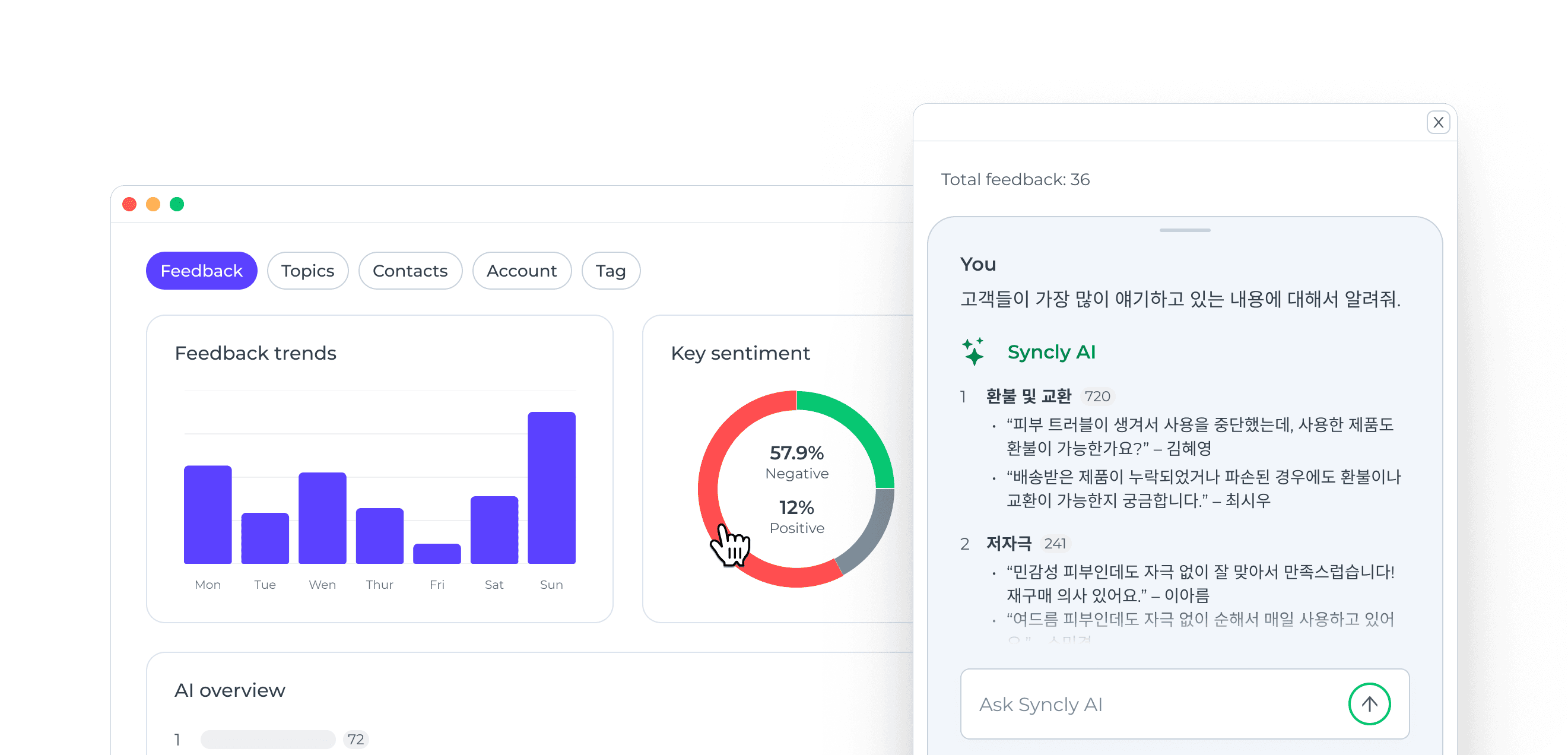 처음엔 SNS 반응만 보고 블랙헤드에 집중했는데, 실제 리뷰에선 ‘잔여감’과 ‘트러블’ 우려가 더 컸어요. 싱클리 덕분에 방향을 바꿔 샘플링 전략을 전면 수정했습니다.