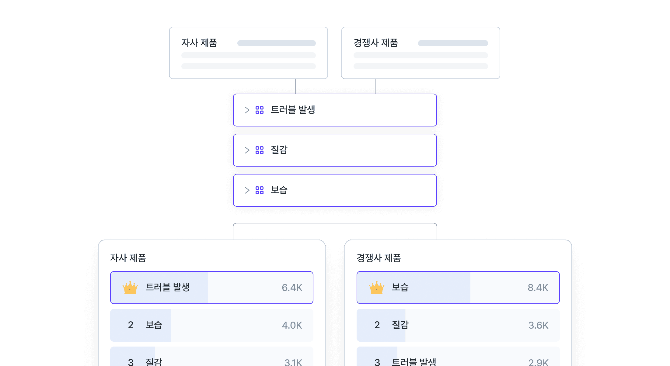 실망했는지’를 파악하여 제품별 성공 요인과 개선 포인트가 명확히 드러납니다.