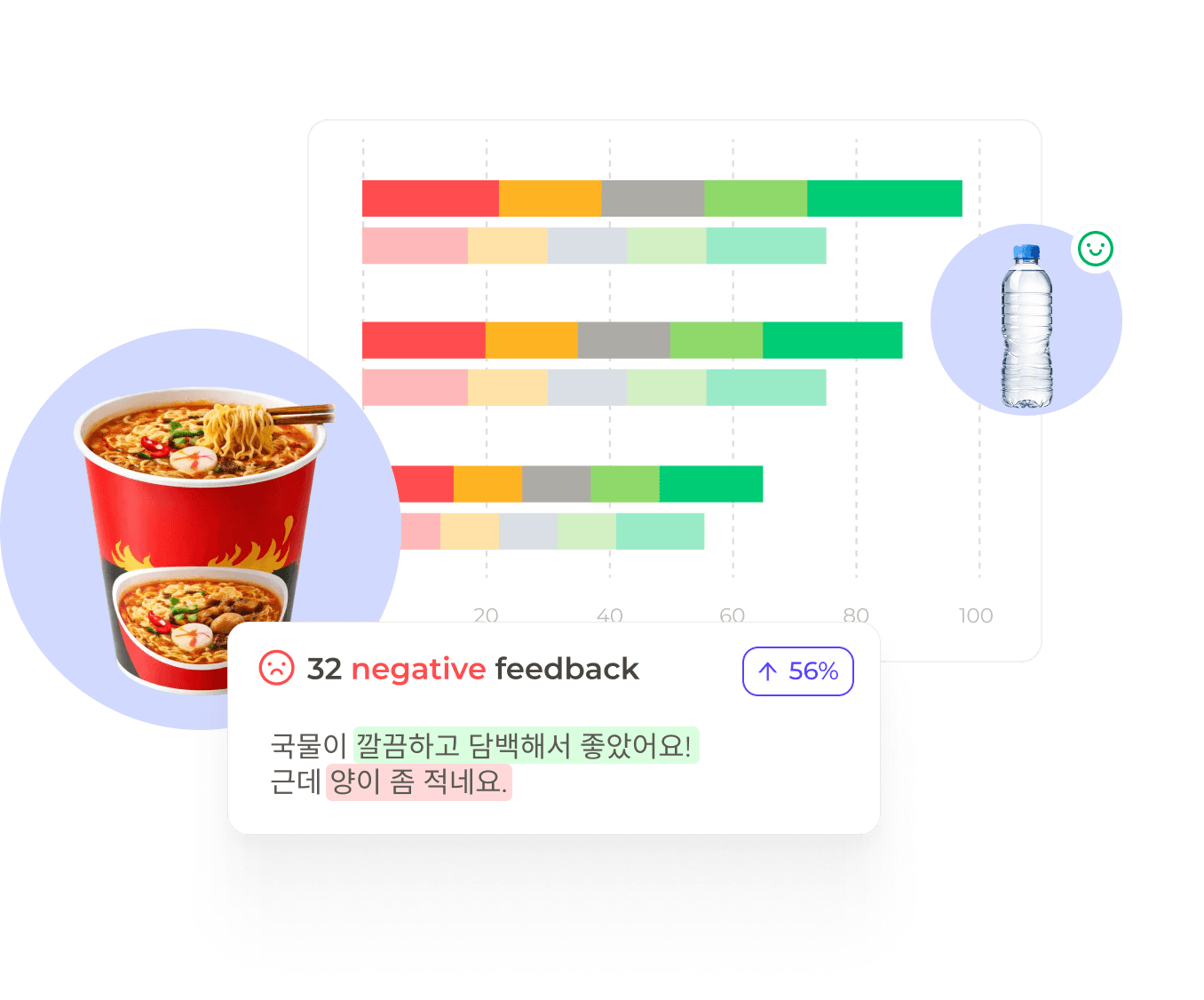 영상은 영상 안의 내용까지 꼼꼼하게 분석해야 합니다. AI 비전 기술로 영상 내 객체, 행동, 자막을 인식하여 실제 온라인 공간에서 퍼져나가는 우리 브랜드 관련 메시지를 왜곡 없이 분석합니다.