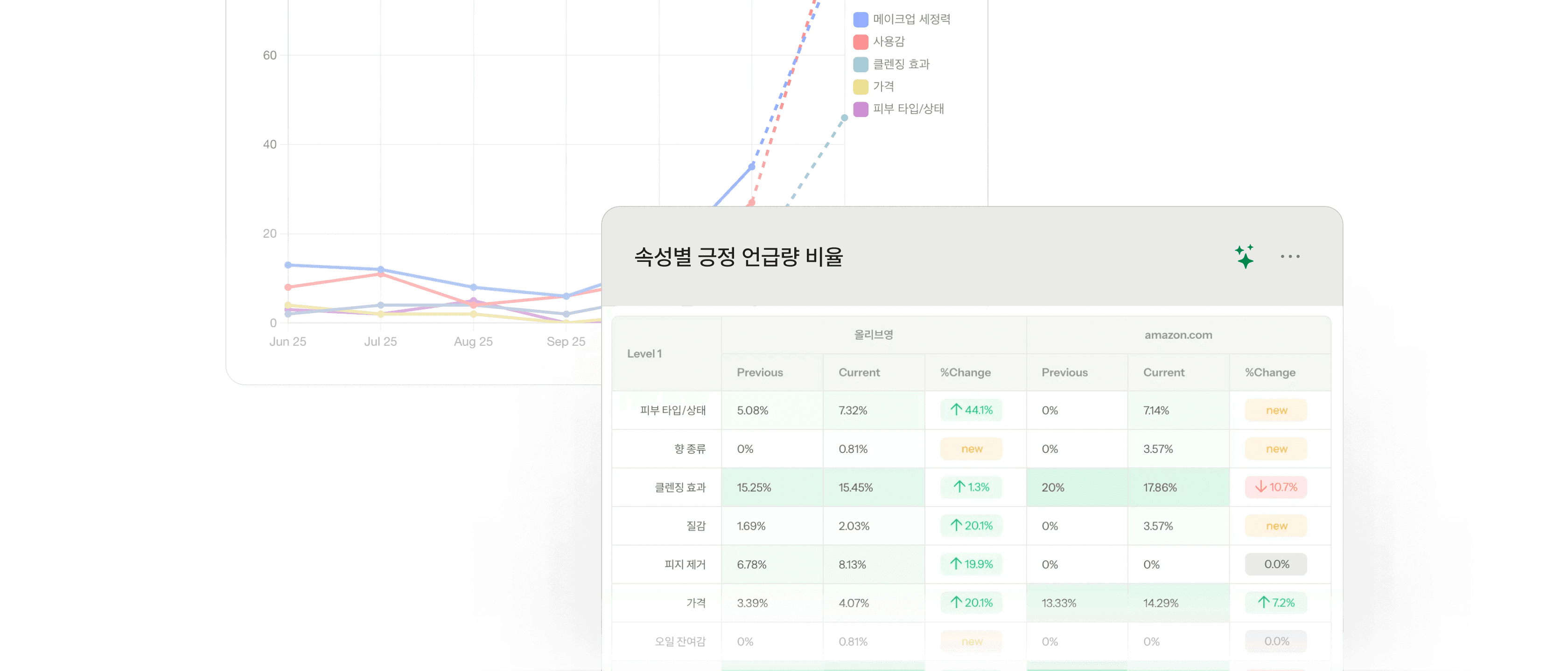 속성을 교차 분석하여 다른 브랜드 대비 우리 브랜드의 강점과 약점을 파악하여 브랜드 포지셔닝을 강화하세요.
