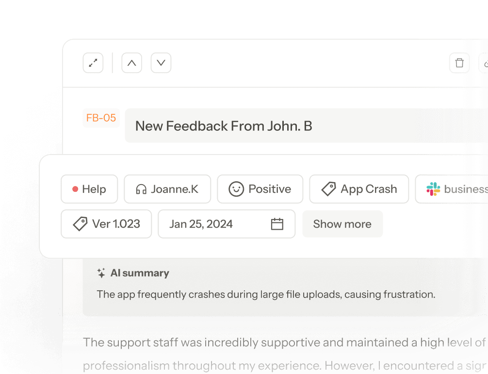 피드백은 자동으로 정리됩니다. 팀은 고객 경험을 개선하는 데만 집중하세요.